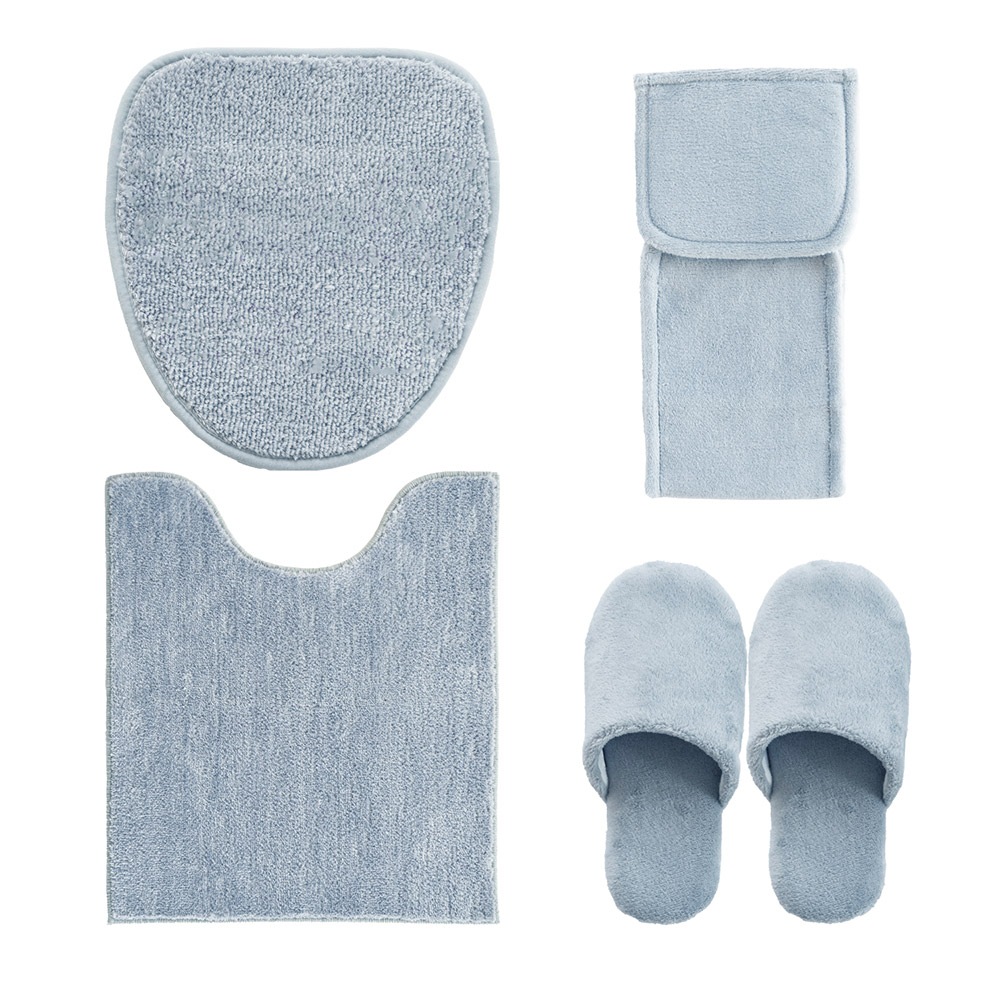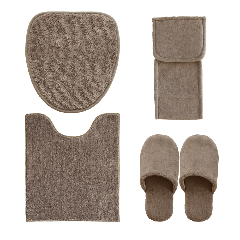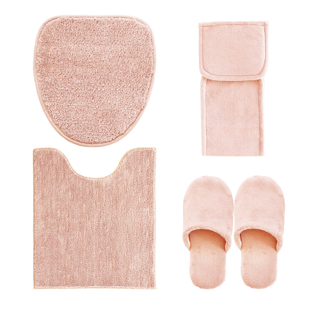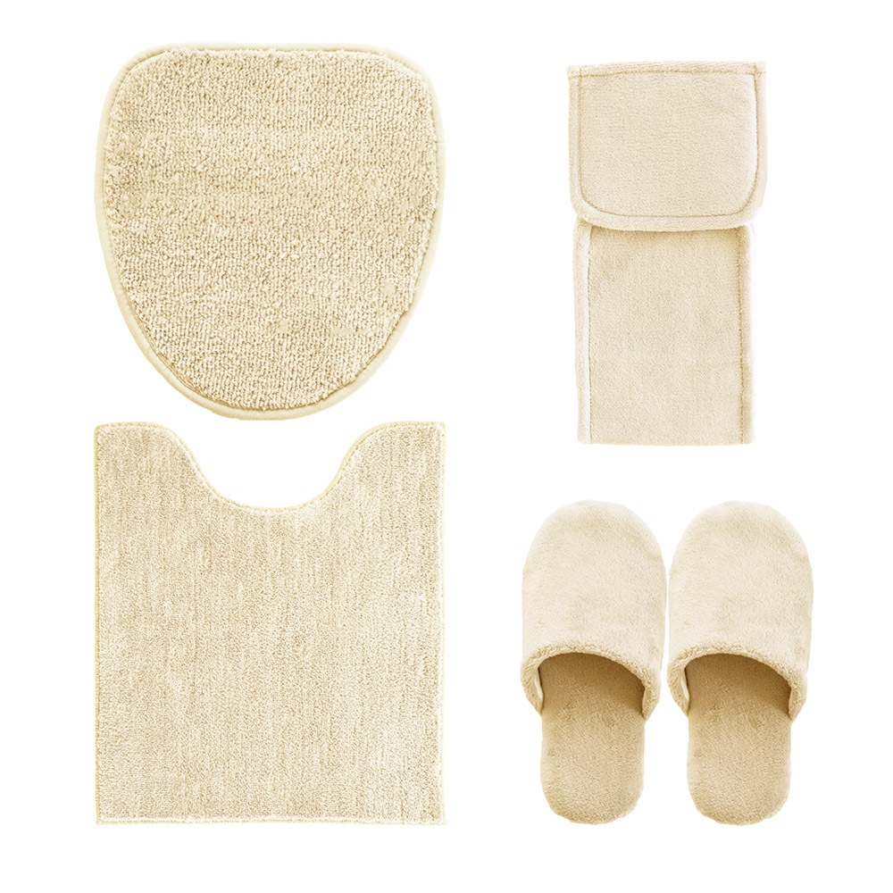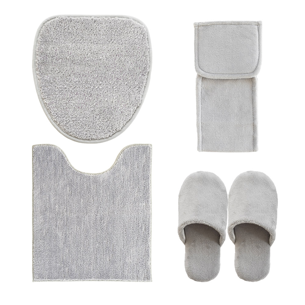 コクーン トイレ4点セット ( トイレマット+トイレデコフタシート+スリッパ+ホルダーカバー )(洗える 裏面すべり止め 無地 シンプル ナチュラル 北欧 風水 レギュラーサイズ )