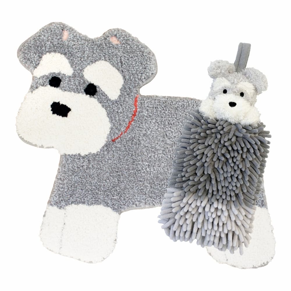 ファンディットアニマル ミニラグ+モールタオル セット ( 洗える アクセントマット タオル 犬 猫 プードル 豆しば 三毛猫 シュナウザー ギフト プレゼント )