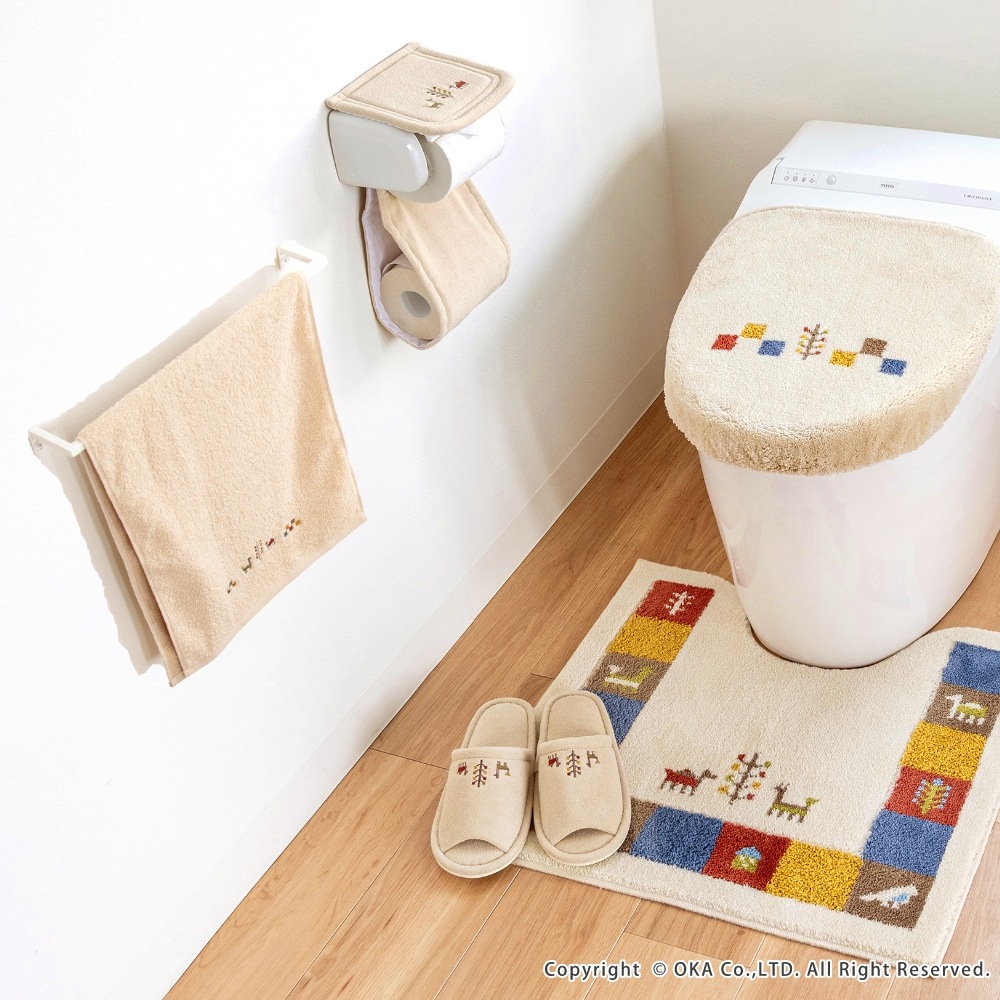 シエラ トイレ4点セット ( トイレマット+トイレフタカバー+スリッパ+ホルダーカバー )(洗える 裏面すべり止め加工 ギャベ ナチュラル 北欧 風水 )