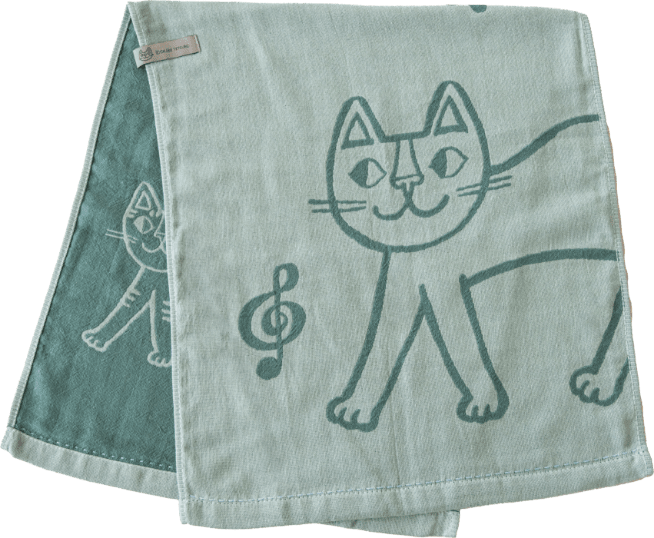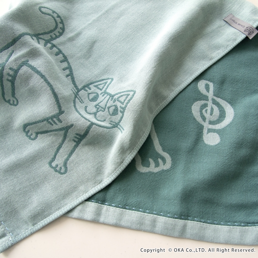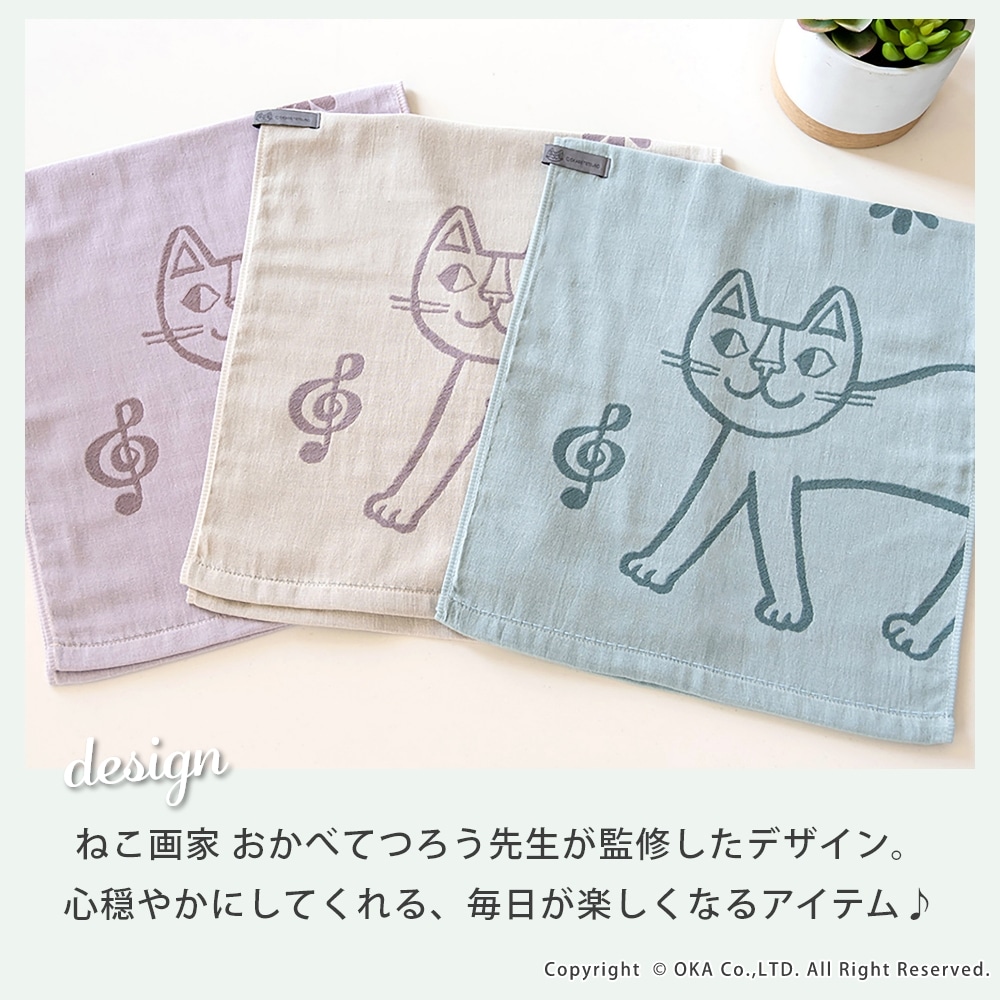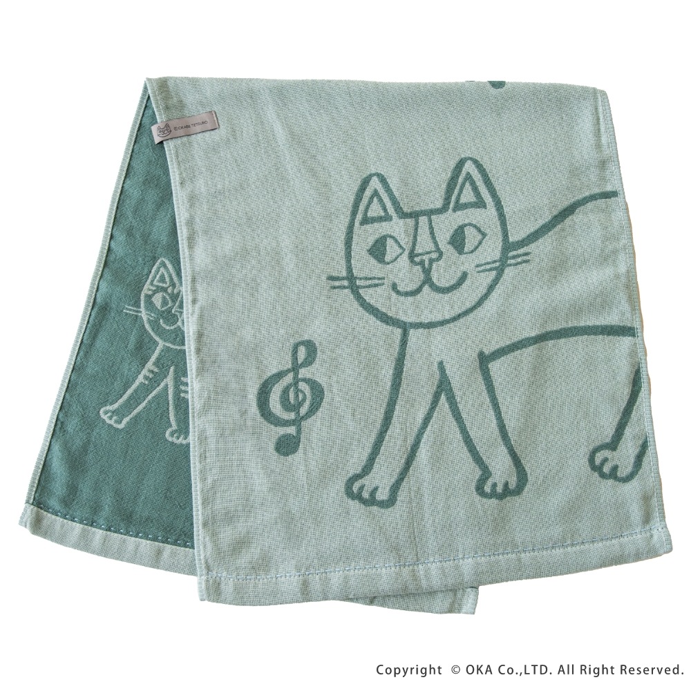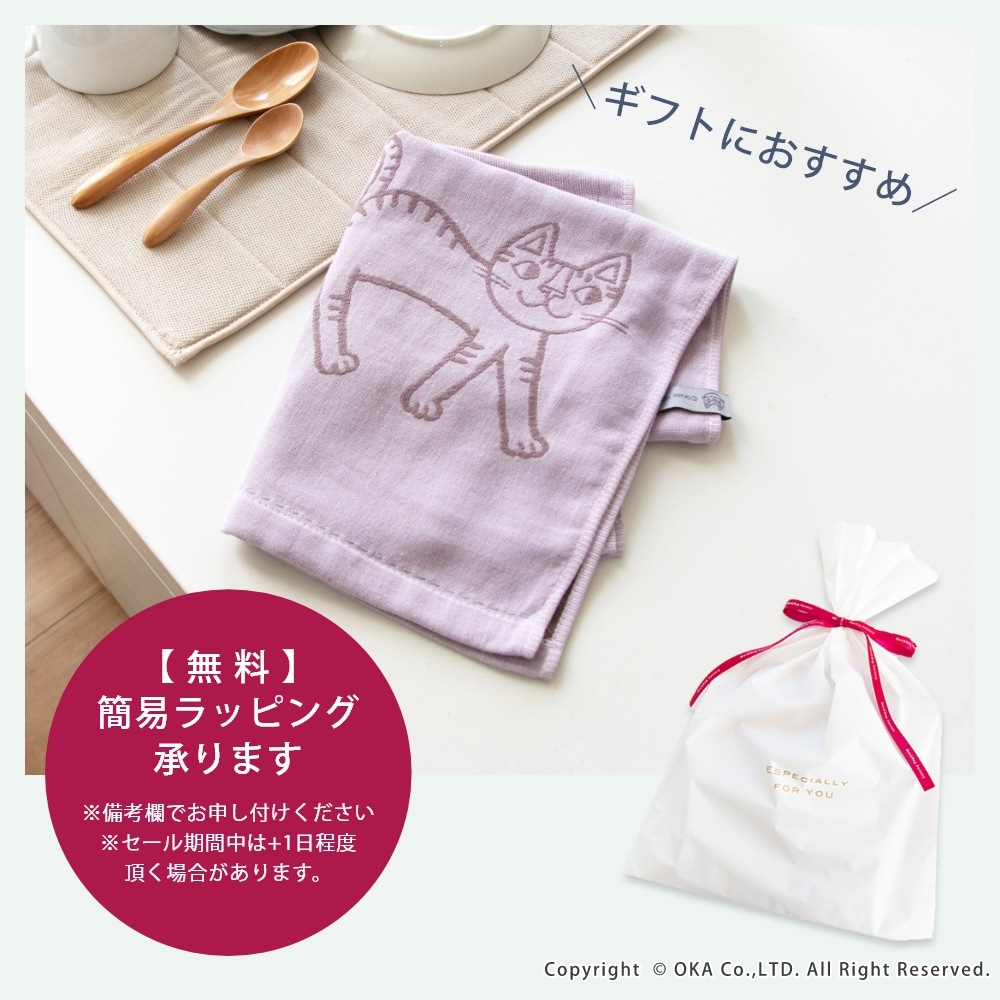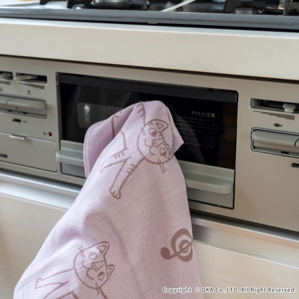 ねこ画家、おかべてつろう先生のねこのイラストを二重ガーゼのジャガード織りで表現したキッチンタオル。Ag+(銀イオン)がふきんについた雑菌を<直接抗菌+光触媒抗菌>のダブル抗菌!Ag+(銀イオン)を繊維自体に練り込んでいるので、100回洗濯した後も抗菌効果は持続します。<直接抗菌>繊維に練り込んだAg+(銀イオン)が付着した雑菌の増殖を抑えます。<光触媒抗菌>Ag+(銀イオン)に太陽や蛍光灯の光が当たると、触媒作用により抗菌機能を発揮します。だからイヤなニオイがしにくく、キッチンでも清潔にお使いいただけます。親子のねこが楽しくお散歩している情景が目に浮かぶデザインになっています。カラーはシックでおしゃれな3色です。キッチンに置いても引き立ち、キッチンワークが楽しくなります。乾きが早く、手になじむやわらかさで、かわいい上に使い心地にも優れています。パッケージにはおかべてつろう先生のイラスト「森のレストラン」を採用し、ギフトにもおすすめです!