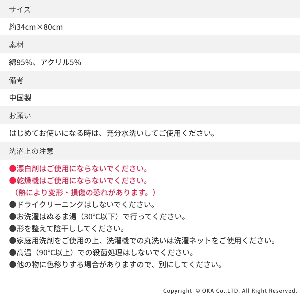 ※繊維製品につきサイズに多少の誤差が生じる場合があります。 - 素 材 :