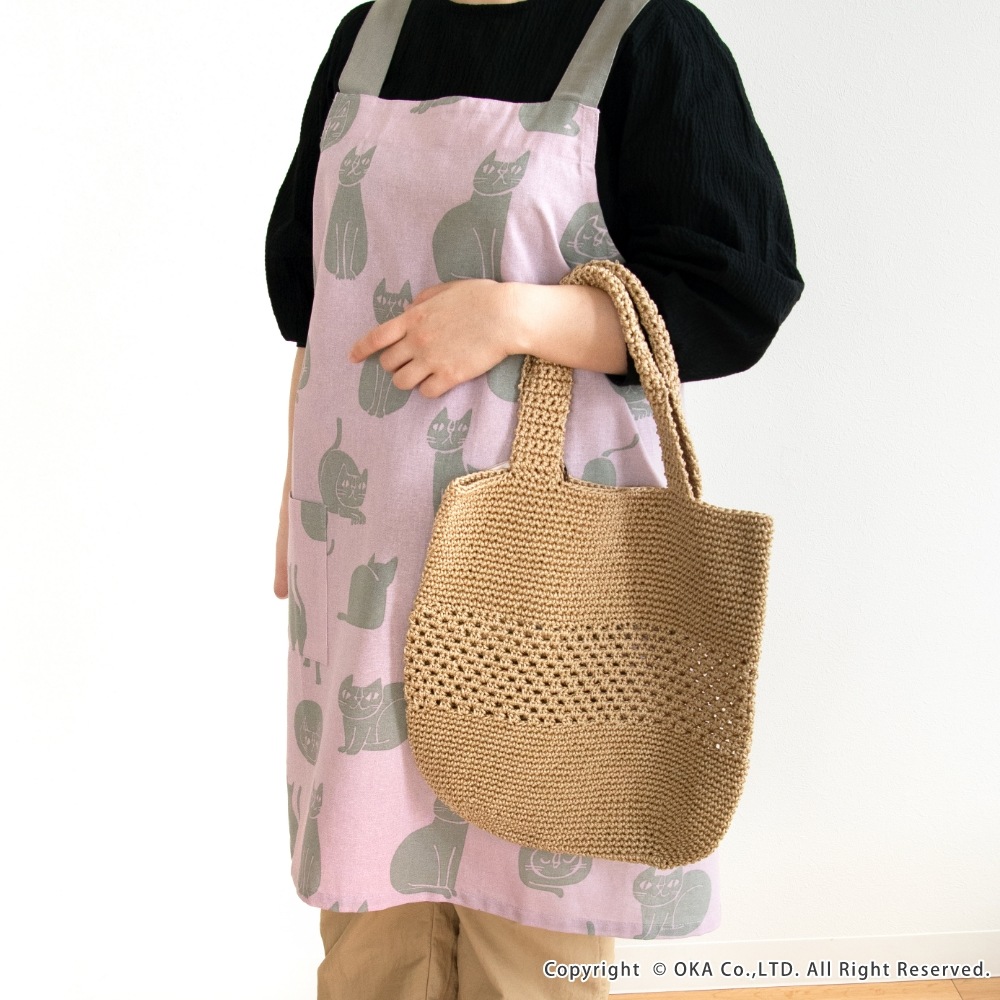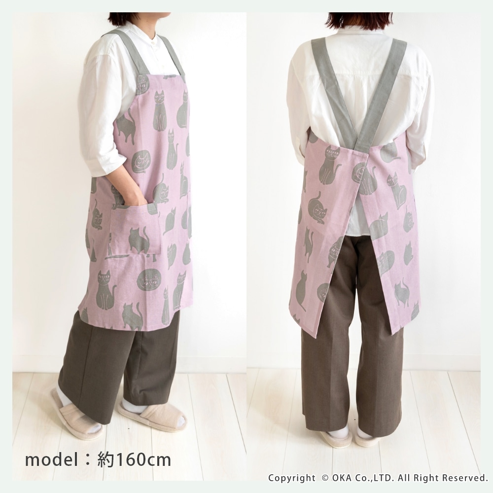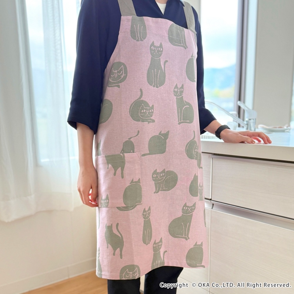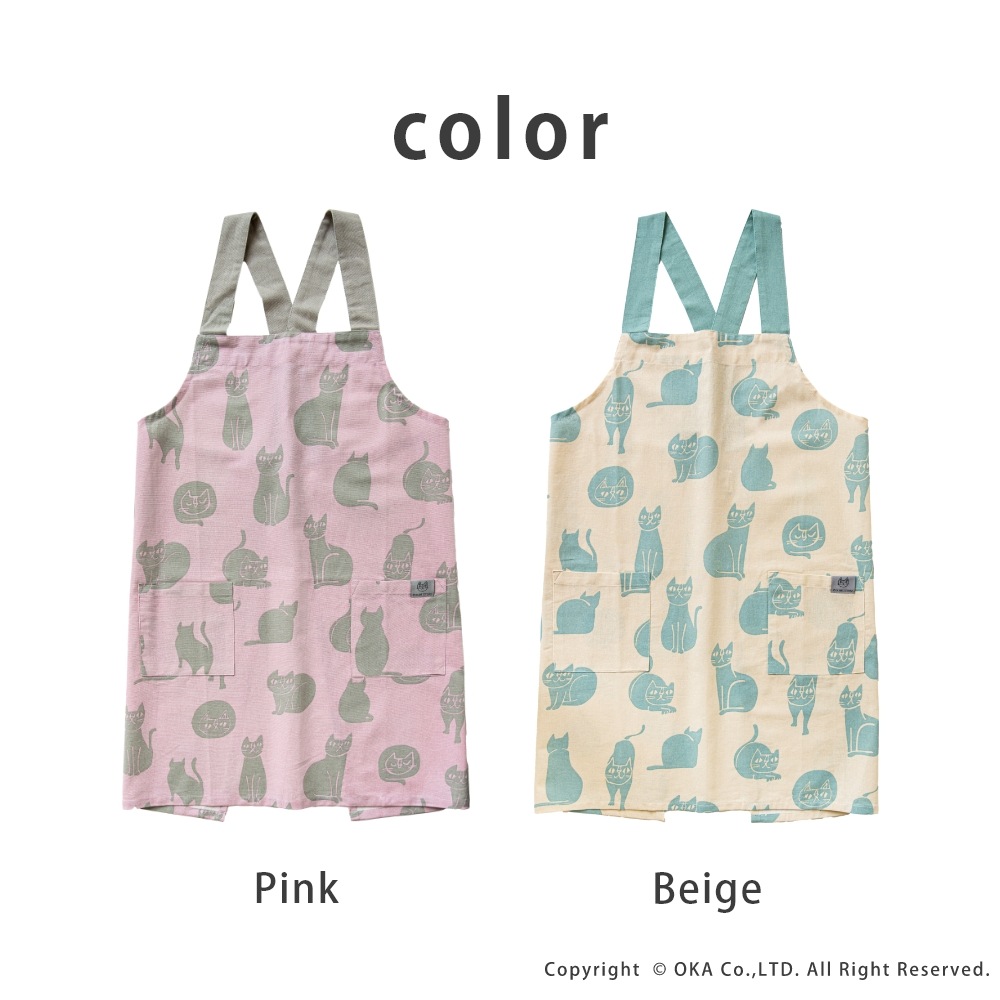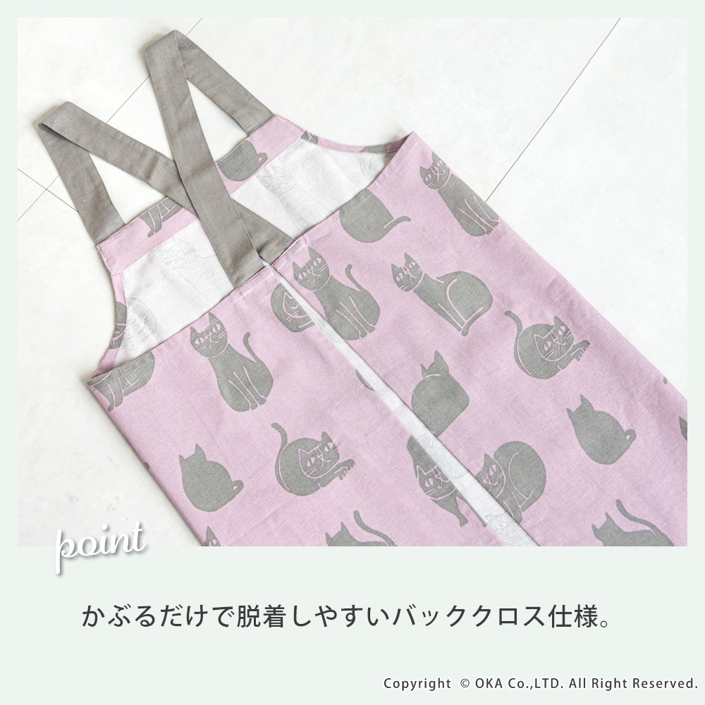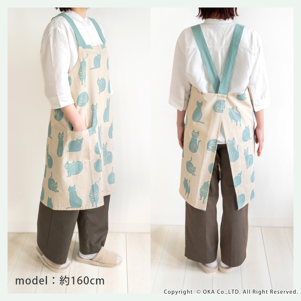ねこ画家、おかべてつろう先生のねこのイラストが、かわいいエプロンに。着るだけで楽しくなる、ねこのシルエットがいっぱいのデザインです。 紐を結んだりする手間がなく、かぶるだけで簡単に脱着できます。また、コットン100%とさらりとした生地感でナチュラルな手触り、季節を問わず快適な着心地です。エプロンの両サイドにはスマホが入る大きめのポケットがついており、とても便利な仕様になっています。汚れても、洗濯機で手軽に洗うことができます。 ラベルにはおかべてつろう先生のイラスト「森のレストラン」を採用し、ギフトにも可愛くおすすめです!