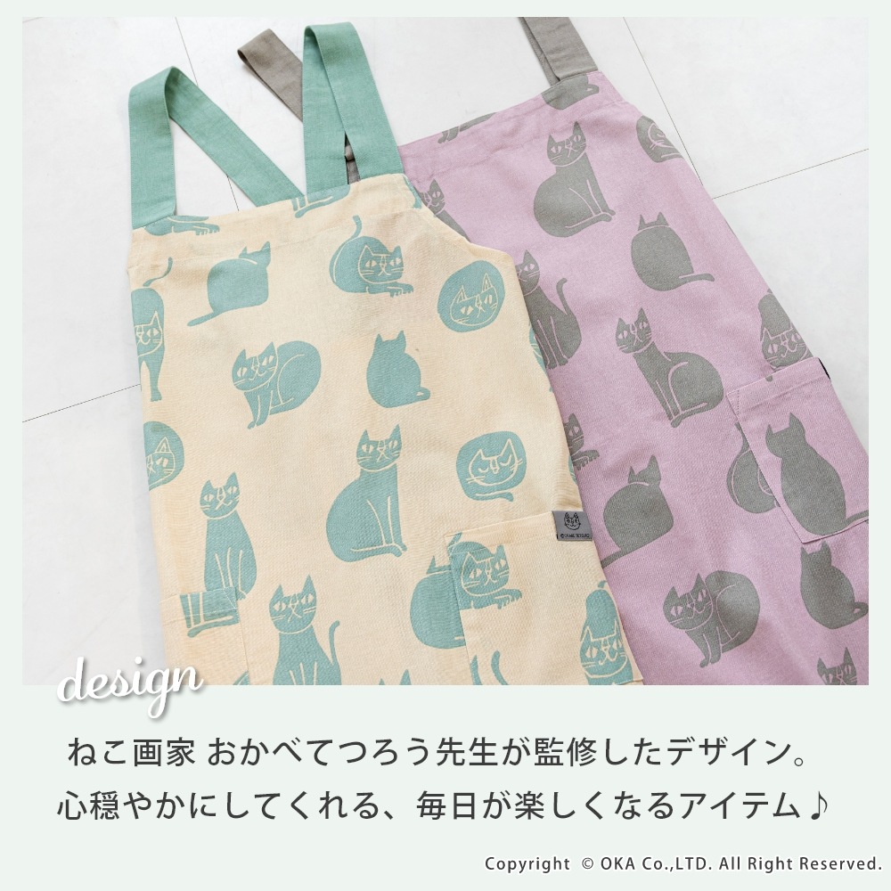 おかべてつろう エプロン ( ねこ 猫柄 綿100% おしゃれ プレゼント キッチン雑貨 洗える )