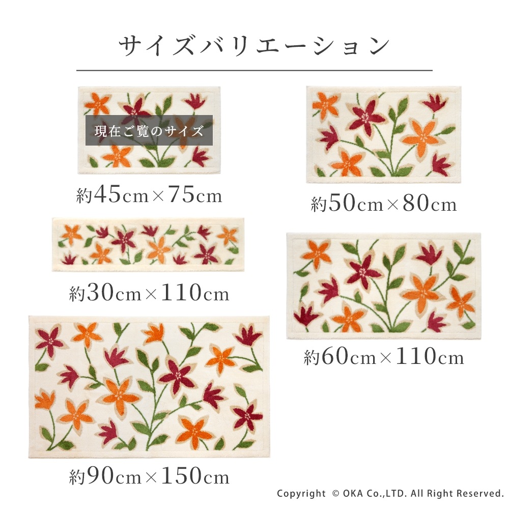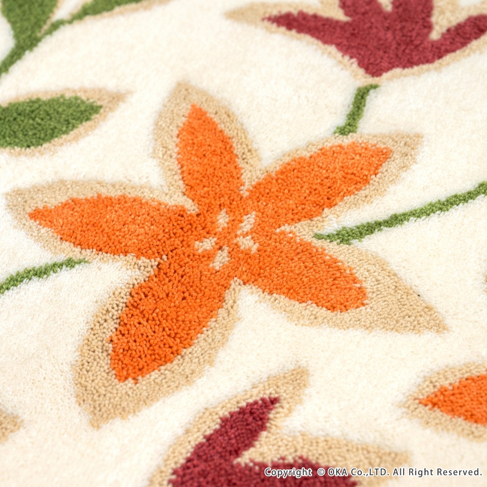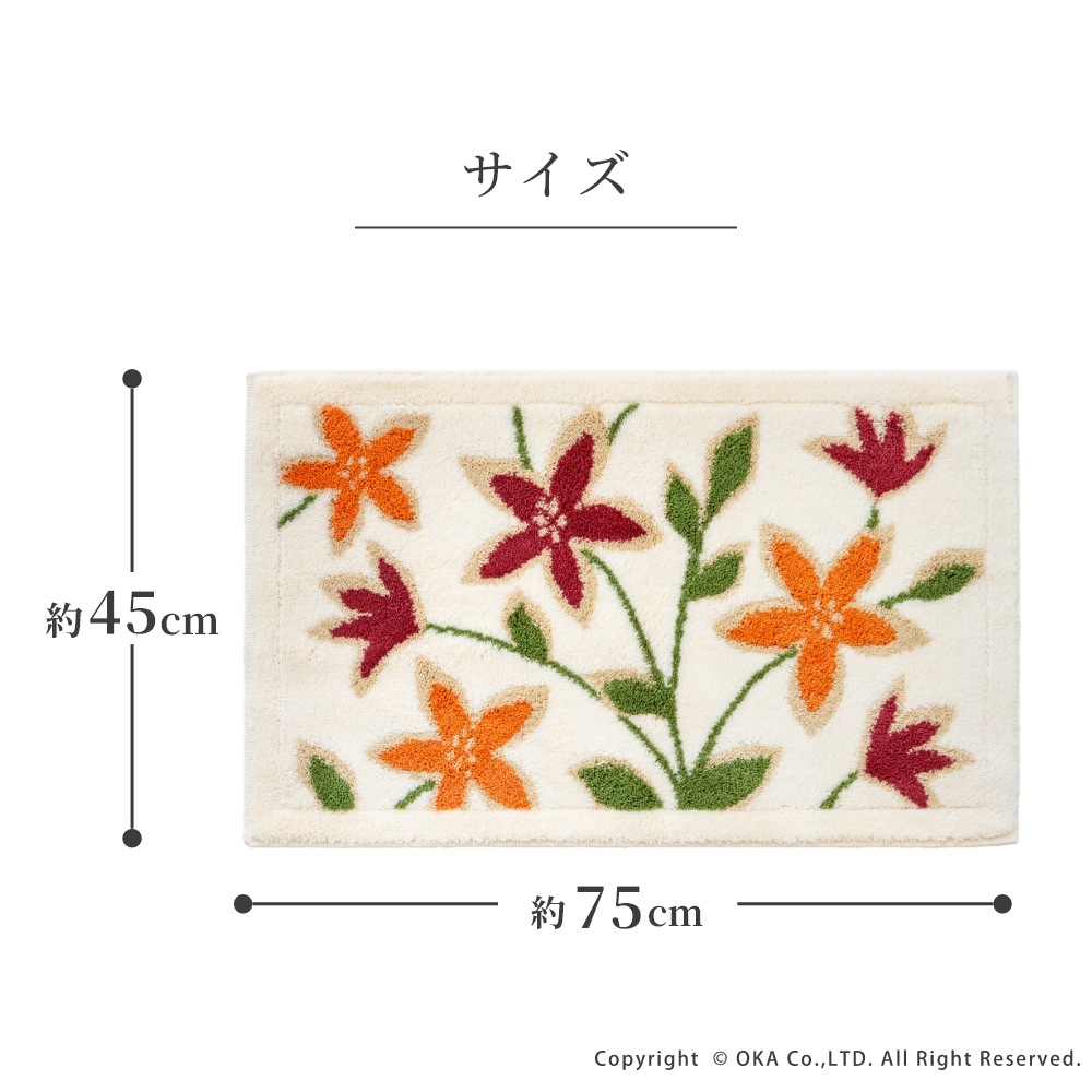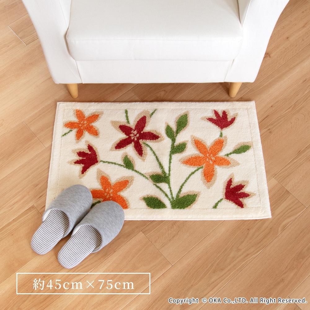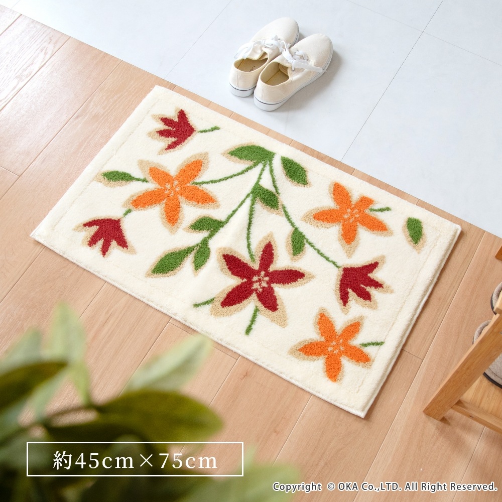 洗えるコーナー吸着玄関マットパシオーネ 約45cm×75cm ( 日本製 洗える 風水 花柄 植物 北欧 オレンジ )