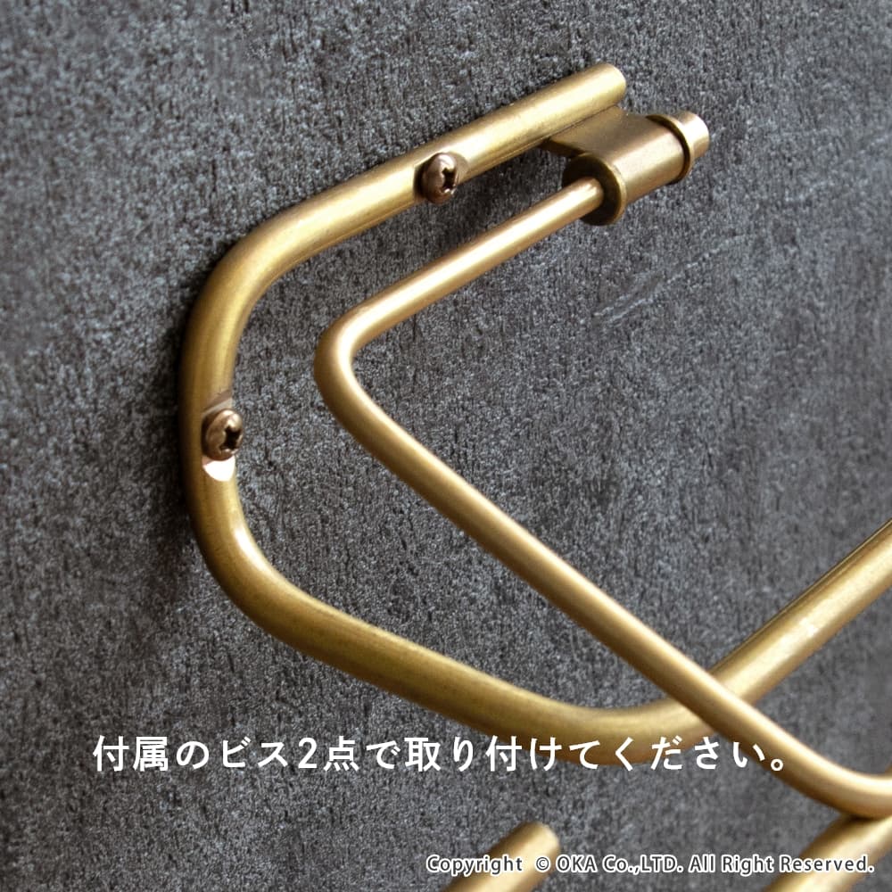 - 付属のビスは意匠に趣をおいたビスです。その為、取り付ける場所の素材にあったビスをご使用ください。また、取り付ける壁の素材が中空構造(石膏ボード)の場合には、ボードの厚みに合った、ボードアンカーとビスをご使用ください。真鍮は空気に触れることで酸化いたしますので、時間の経過に伴って色が変化してきます。 使い込むほど味わいが増す真鍮の特性としてお楽しみいただけます。 緑青(ろくしょう)という水や空気中に触れることで色が変わって青くなってしまう現象が発生する可能性もございます。 気になる方は定期的に磨いていただきお手入れしていただくことで、きれいな状態を保つことができます。