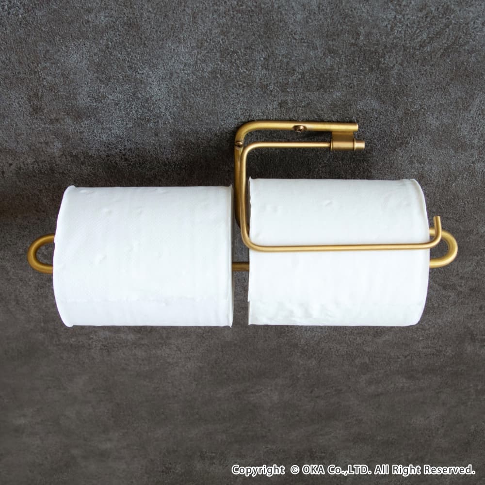 ren ブラス トイレットペーパーホルダー ダブル ( ペーパーホルダー トイレ ホルダー 2連 真鍮 ゴールド )
