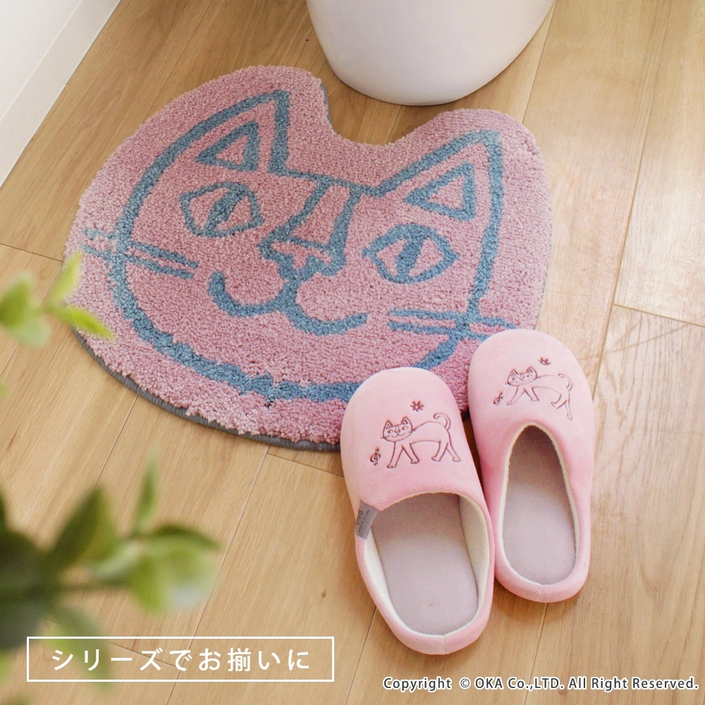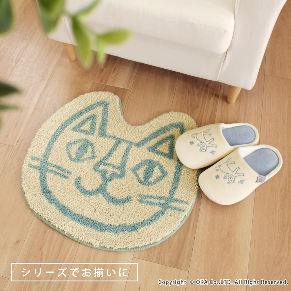 ねこ画家、おかべてつろう先生のねこのイラストが、かわいいねこ型のマットになって登場。ふわふわの手ざわりが気持ちよく、ねこの可愛い雰囲気にぴったりな素材感で、縁の色もアクセントになっています。コンパクトなサイズで、玄関やトイレ、洗面所などのマットとして、また座布団替わりにリビングやお部屋で使うのもおすすめです。裏面にはすべり止め加工が施されており、おうちの様々な場所に敷いてもズレにくいのが嬉しいポイントです。洗濯ネットに入れて洗濯機で丸洗いが可能、もし汚れてしまってもお手入れが簡単です。同シリーズのスリッパとお揃いにお使いいただくと、よりインテリアが可愛く癒しの空間にしてくれます♪誕生日や母の日、引っ越し祝いなどのギフトにも可愛くておすすめです!