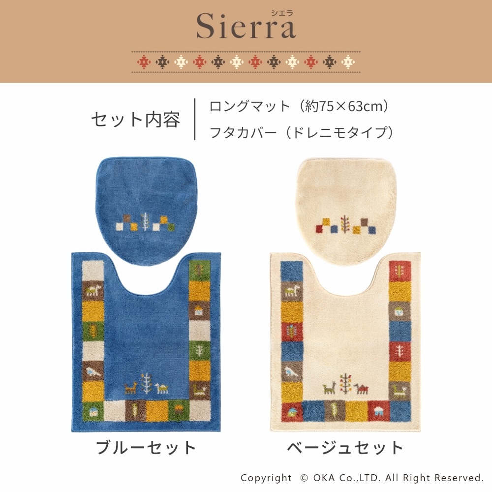 ギャベ柄でおしゃれな「シエラ」シリーズのトイレセット。シエラとは山脈を意味し、山脈周辺でギャベを織る遊牧民からイメージしたデザインです。