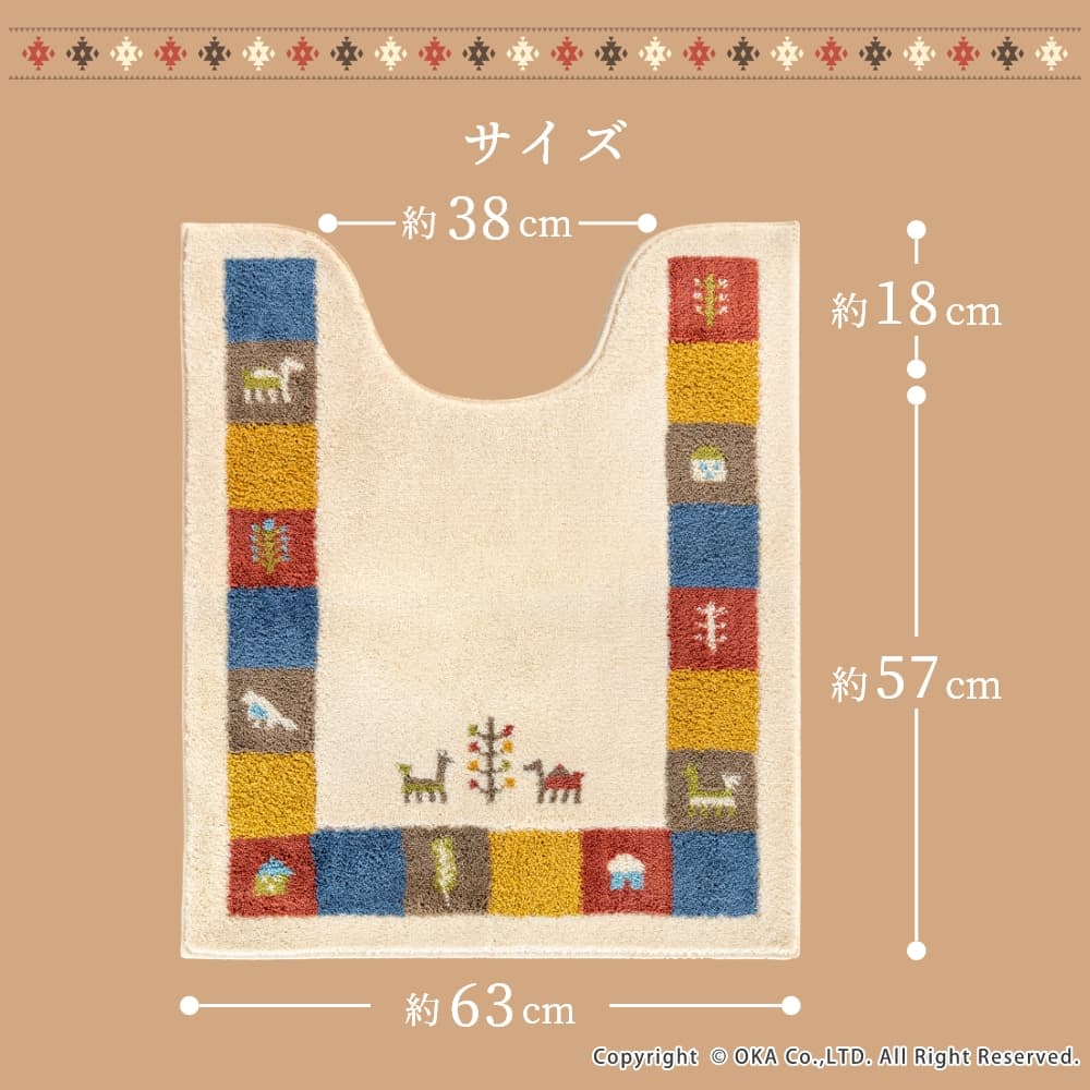 シエラ トイレマット 約55cm×60cm ( 洗える ギャベ ナチュラル 北欧 風水 レギュラーサイズ )