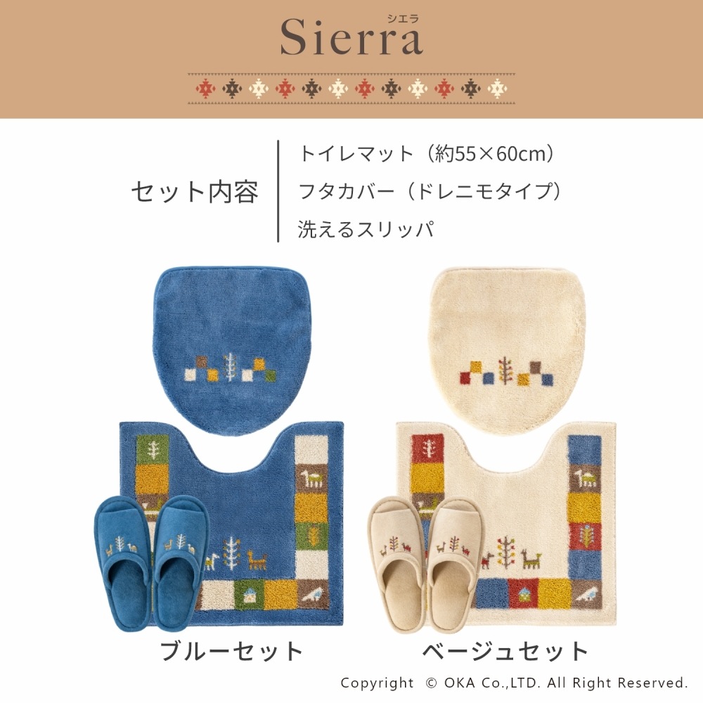 ギャベ柄でおしゃれな「シエラ」シリーズのトイレセット。シエラとは山脈を意味し、山脈周辺でギャベを織る遊牧民からイメージしたデザインです。