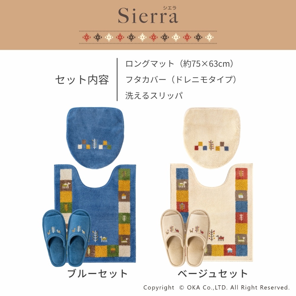 ギャベ柄でおしゃれな「シエラ」シリーズのトイレセット。シエラとは山脈を意味し、山脈周辺でギャベを織る遊牧民からイメージしたデザインです。