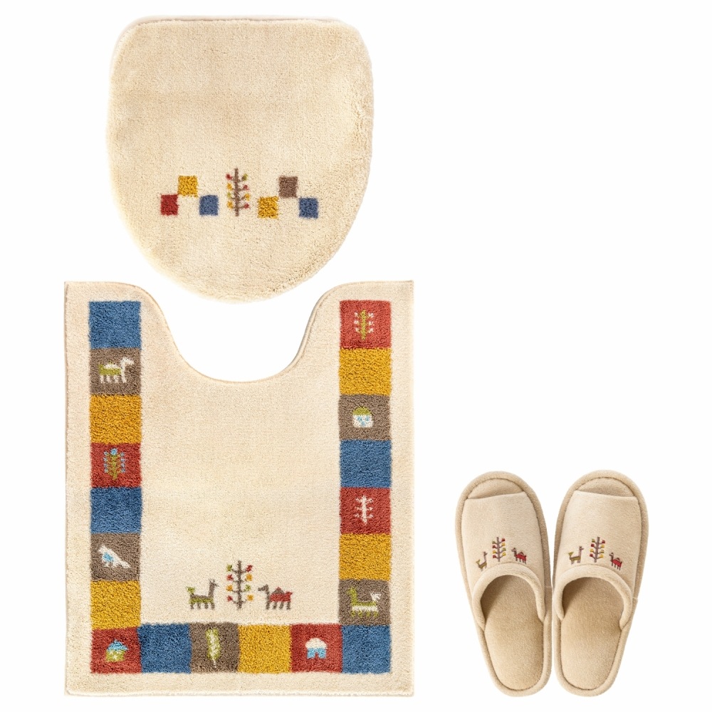 シエラ トイレ3点セット ( トイレマット+トイレフタカバー+スリッパ )(洗える 裏面すべり止め加工 ギャベ ナチュラル 北欧 風水 )