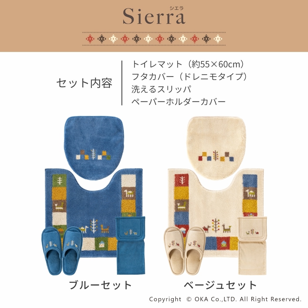 ギャベ柄でおしゃれな「シエラ」シリーズのトイレセット。シエラとは山脈を意味し、山脈周辺でギャベを織る遊牧民からイメージしたデザインです。