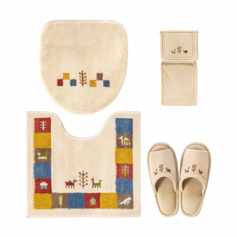 シエラ トイレ4点セット ( トイレマット+トイレフタカバー+スリッパ+ホルダーカバー )(洗える 裏面すべり止め加工 ギャベ ナチュラル 北欧 風水 )