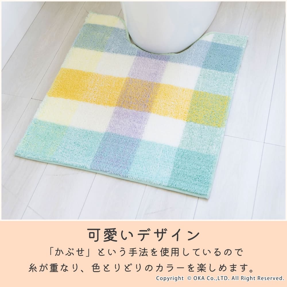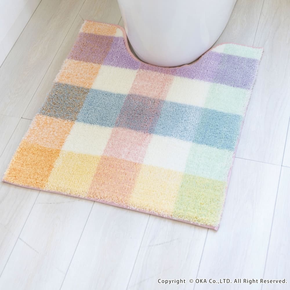 パレット トイレマット 約48cm×53cm ( 洗える チェック パステル ナチュラル 北欧 風水 レギュラーサイズ )