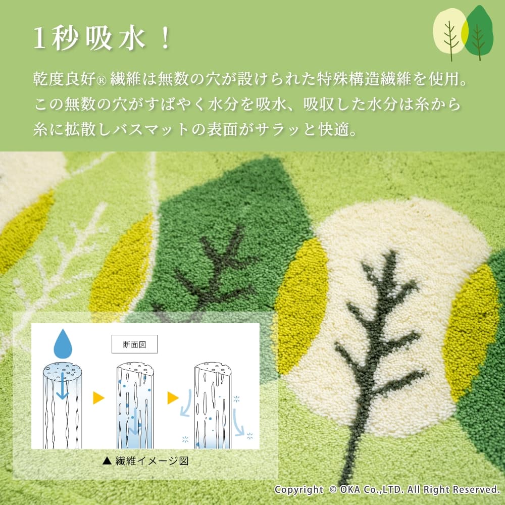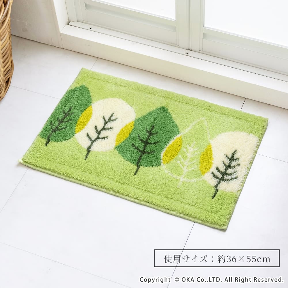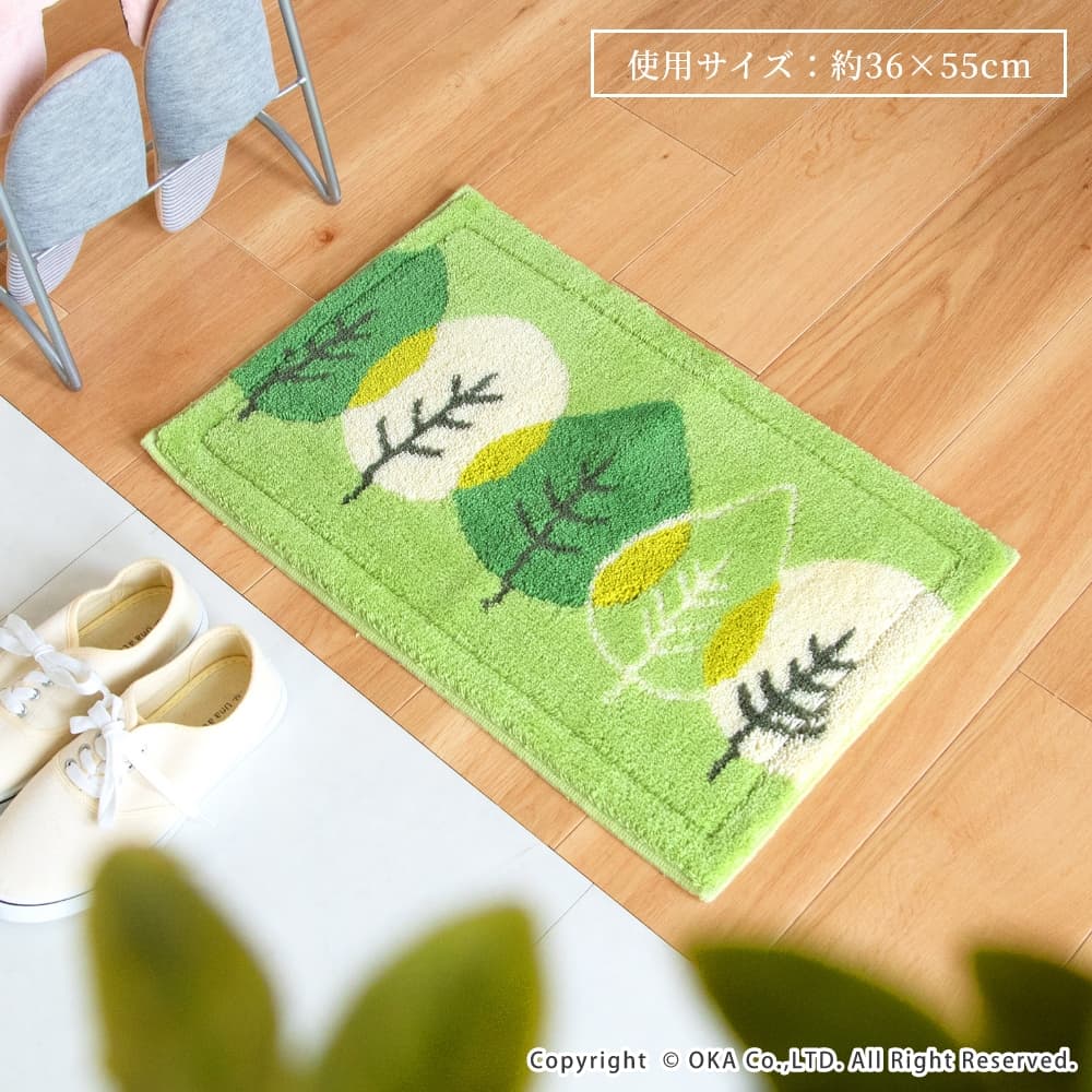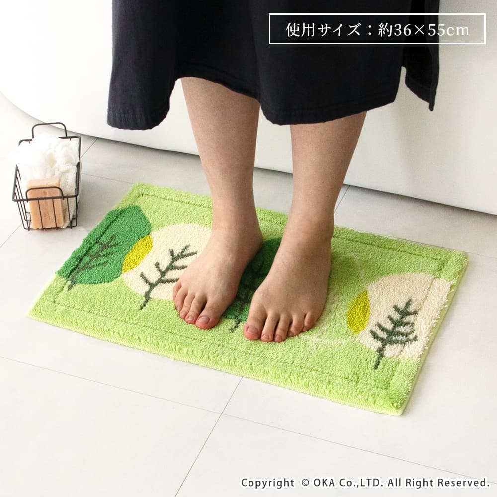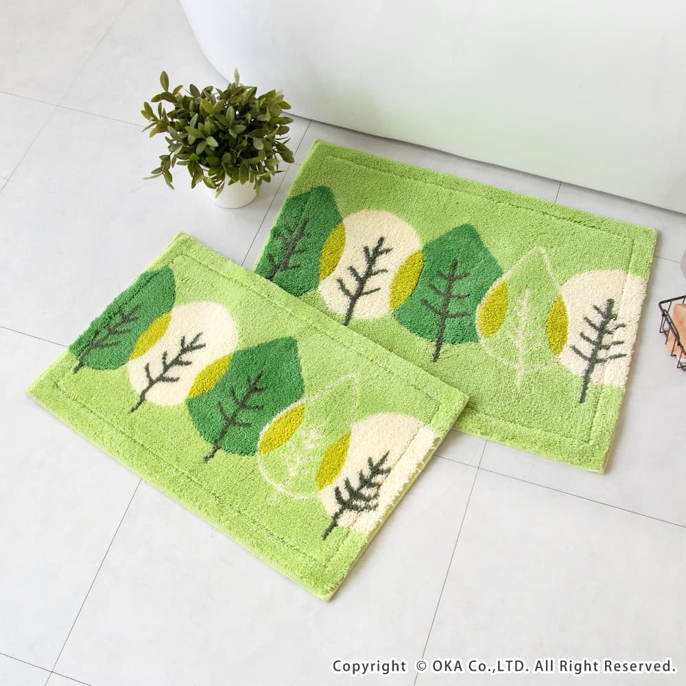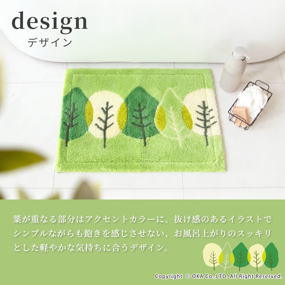 乾度良好リーフダンス バスマット 約36cm×55cm ( 洗える お風呂マット 吸水 速乾 抗菌 防臭 日本製 リーフ柄 植物 緑 グリーン シンプル ナチュラル )