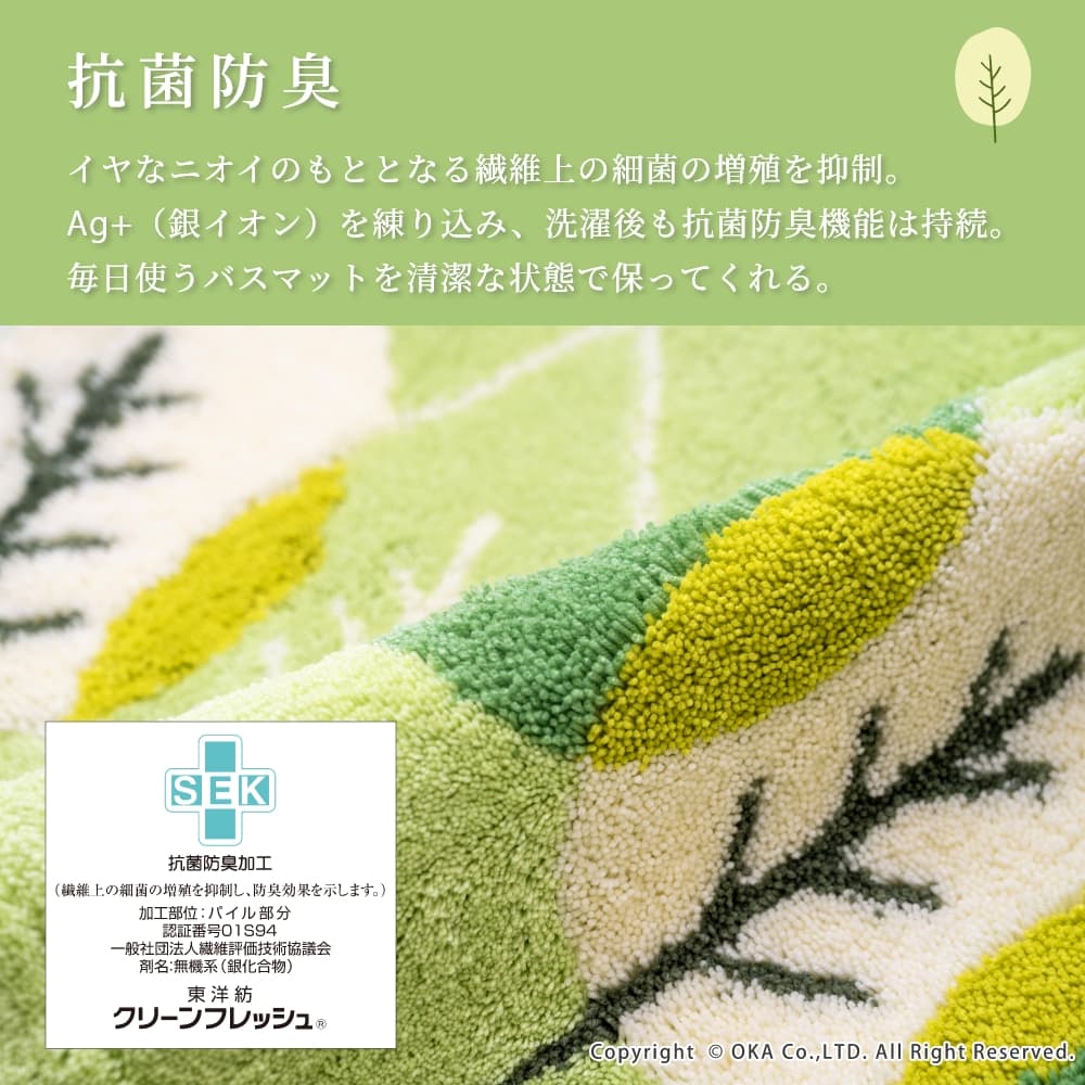 乾度良好リーフダンス バスマット 約45cm×60cm ( 洗える お風呂マット 吸水 速乾 抗菌 防臭 日本製 リーフ柄 植物 緑 グリーン シンプル ナチュラル )