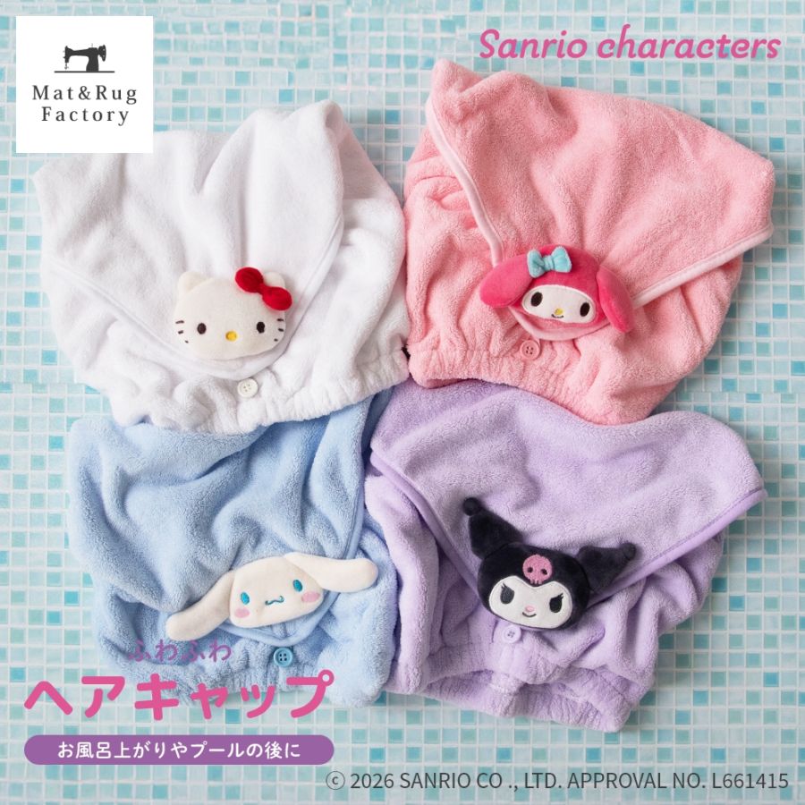 サンリオキャラクターズ ヘアキャップ ( 髪留め 吸水 プール お風呂 ふわふわ パステルカラー 洗える ギフト用 )